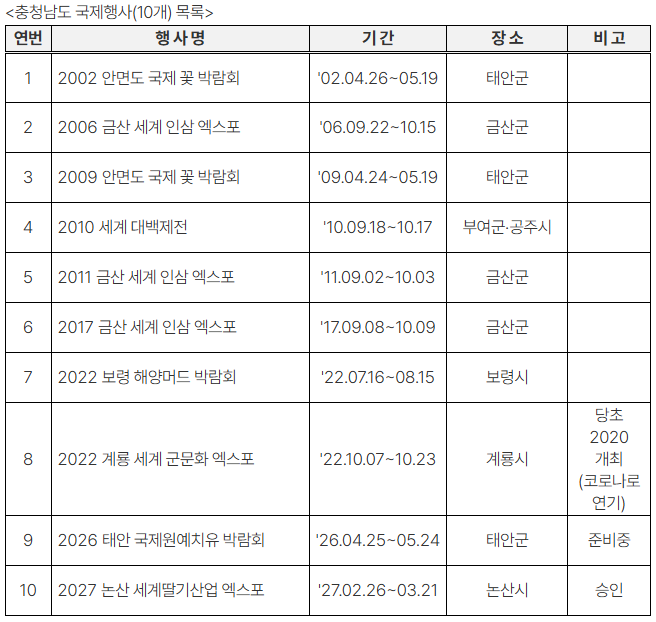 ‘2027 논산세계딸기산업엑스포’는 국비 등 총사업비 197억 원이 투입되며, “케이-베리(K-berry)! 스마트한 농업, 건강한 미래”를 주제로 2027년 2월 26일부터 3월 21일까지 총 24일간 논산시민가족공원(주행사장)과 딸기향 농촌테마공원(부행사장) 일원에서 개최된다.