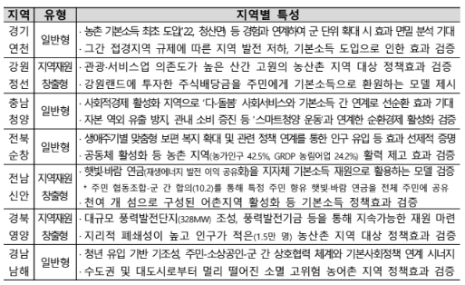 사업 평가 및 선정은 강남훈 한신대 명예교수가 위원장을 맡은 전문가 평가위원회에서 진행됐다. 농식품부는 내년까지 평가 체계를 정비하고, 지역별 추진지원단을 구성해 사업 준비를 본격화할 계획이다. 또한 총괄 연구기관과 지방 연구기관 간 협업체계를 구축하여, 주민 삶의 질, 지역경제 활성화, 인구 구조 변화 등의 정책 효과를 면밀히 분석할 방침이다.