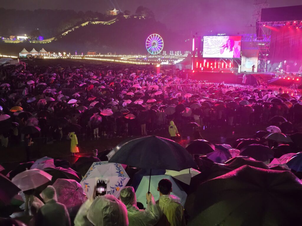 개막식이 열린 금강신관공원 주무대에는 폭우가 쏟아지는 가운데도 우산을 들고 우의를 입고 참석한 수만 명의 관람객들로 뜨거웠다. 백제의 미학과 전통을 반영한 주제공연과 축하무대가 이어지자 환호성과 박수가 쏟아졌고, 1,071대의 드론이 연출한 밤하늘의 쇼는 장관을 이루며 개막 분위기를 절정으로 끌어올렸다.