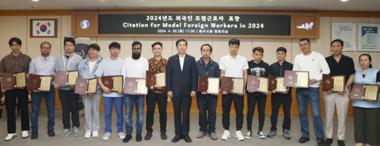 충주시는 30일 시청 3층 중회의실에서 지역경제 발전에 기여한 외국인 모범근로자에게 표창패를 수여했다. 이날 수여식은 타국에서 열심히 일하며 동료 외국인 근로자들이 한국 생활에 적응할 수 있도록 도움을 주고, 지역경제 발전을 위해 노력한 외국인 모범근로자를 표창·격려하기 위해 마련됐다.