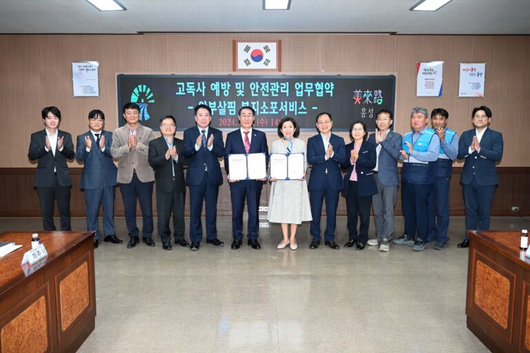 이용록 홍성군수는 “이번 협약을 통해 복지사각지대 발굴과 공동체 활성화가 촉진될 것으로 기대한다.”라며“앞으로도 촘촘한 복지 안전망을 구축에 최선을 다해 ‘고독사 제로’ 홍성을 만들어가겠다.”고 밝혔다.