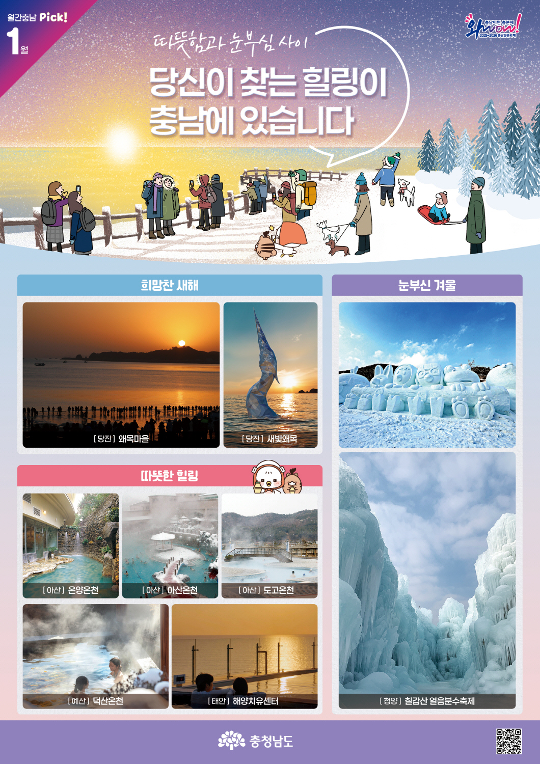 도, ‘월간 충남 1월호’ 발간…몸·마음 따뜻하게 채워줄 여행지 소개 충청남도는 새해를 맞아 ‘따뜻함과 눈부심 사이’를 주제로 한 ‘월간 충남 1월호’를 발간하고, 겨울철 몸과 마음을 따뜻하게 채워줄 도내 대표 여행지를 소개했다. 이번...