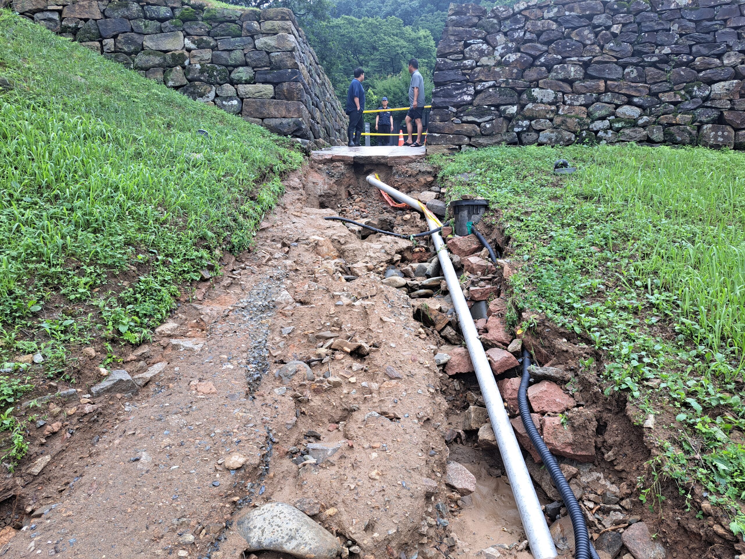 8일 국가유산청에 따르면 연이은 집중호우로 작년에 이어 올해도 유네스코 세계유산인 ‘백제역사유적지구’ 중 한 곳인 공산성 영은사에서 만하루.연지로 이어지는 탐방로 일부가 유실됐다고 밝혔다. 공주시는 작년 7월 집중호우로 만하루 누각 일대가 물에...